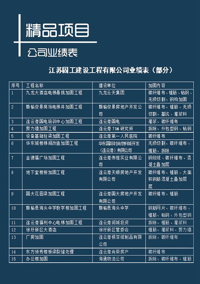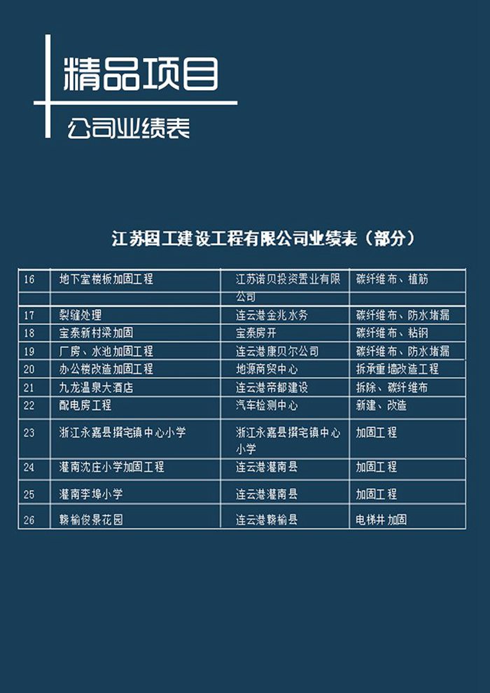 2018年江蘇固工建設(shè)工程有限公司業(yè)績表